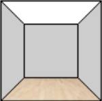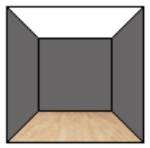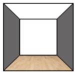 קירות כהים עם רצפה ותקרה בהירה יוצרות מראה של מקום צר, עמוק וגבוה.