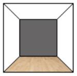 קיר חזית, תקרה ורצפה בהירים וקירות דופן כהים יוצרים חלל עמוק, גבוה וצר יותר ונוטים להדגיש את הקווים האופקיים.