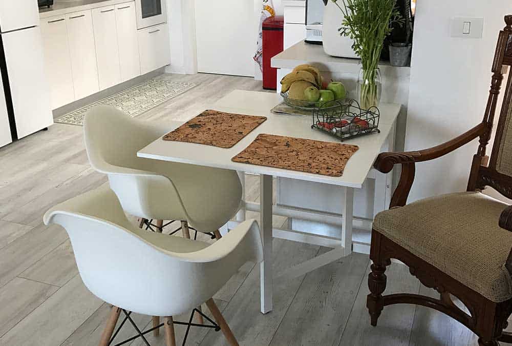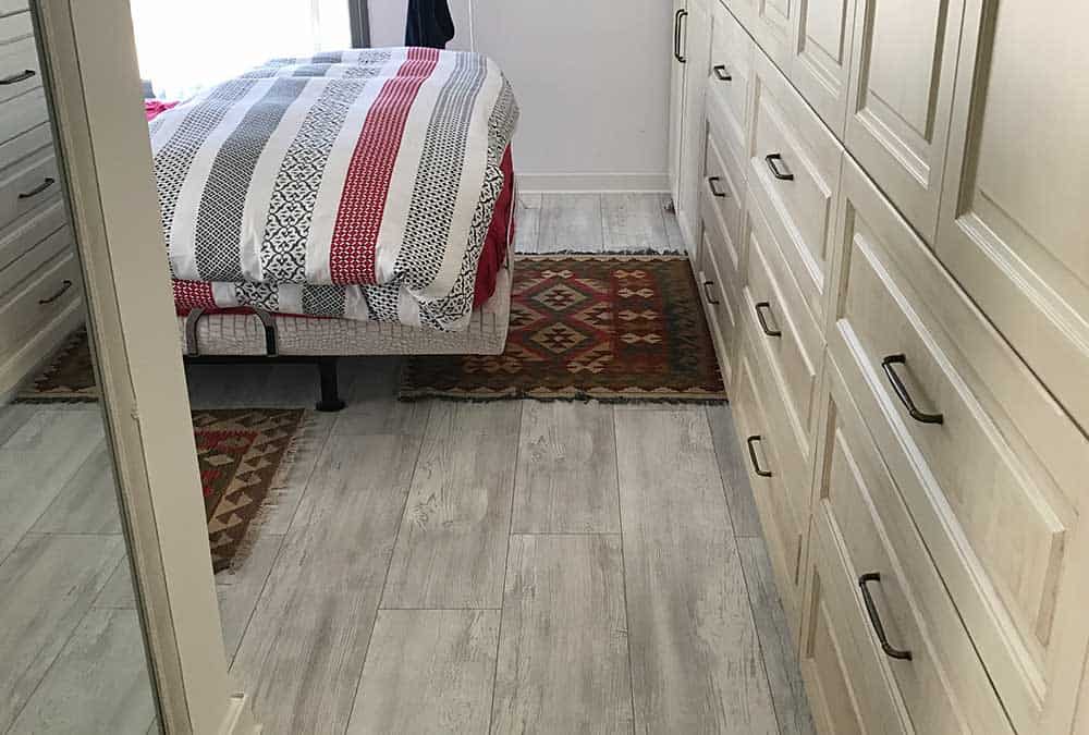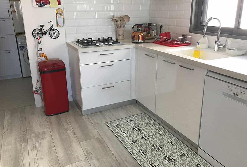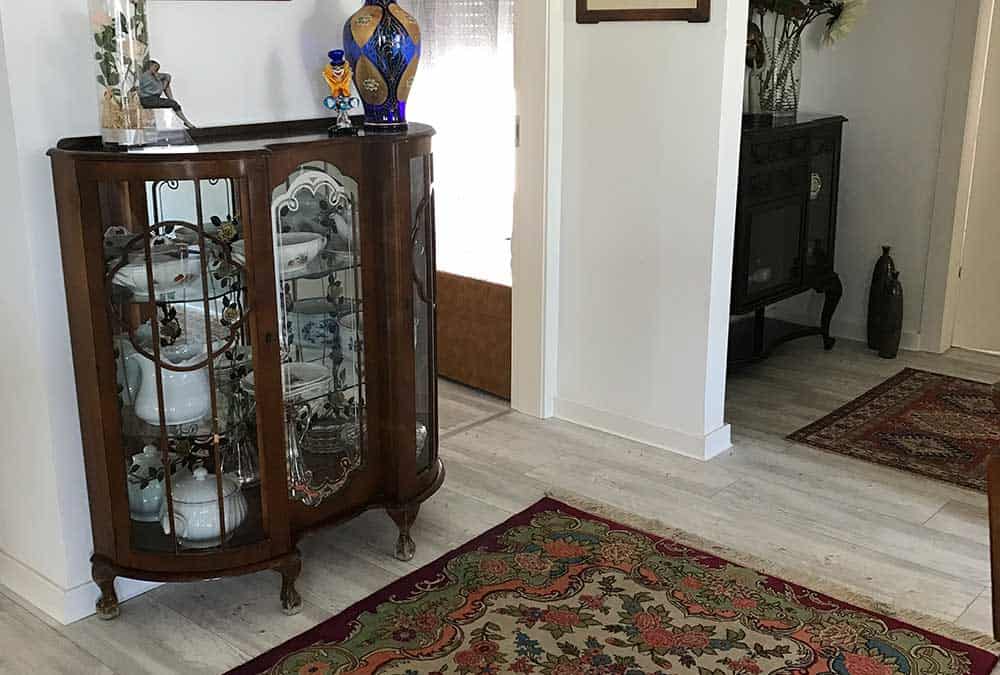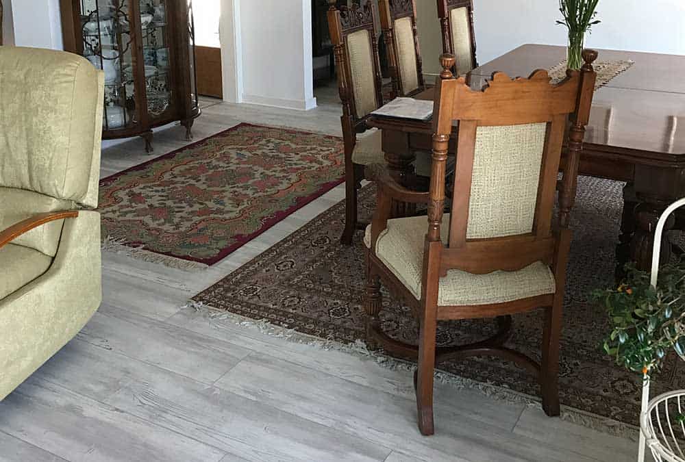 בדירה חדשה בהוד השרון, הותאם פרקט בגווני לבן ואפור. הפרקט מצליח להאיר את הריהוט העתיק והכהה, מחמיא לשטיחים הצבעוניים ומשתלב היטב עם גוון האלומיניום האפור כהה בדירה. מכיוון שהדירה משופעת בפרטי ריהוט ייחודיים, הפרקט מעניק לעין תחושה של מרחב ושקט.