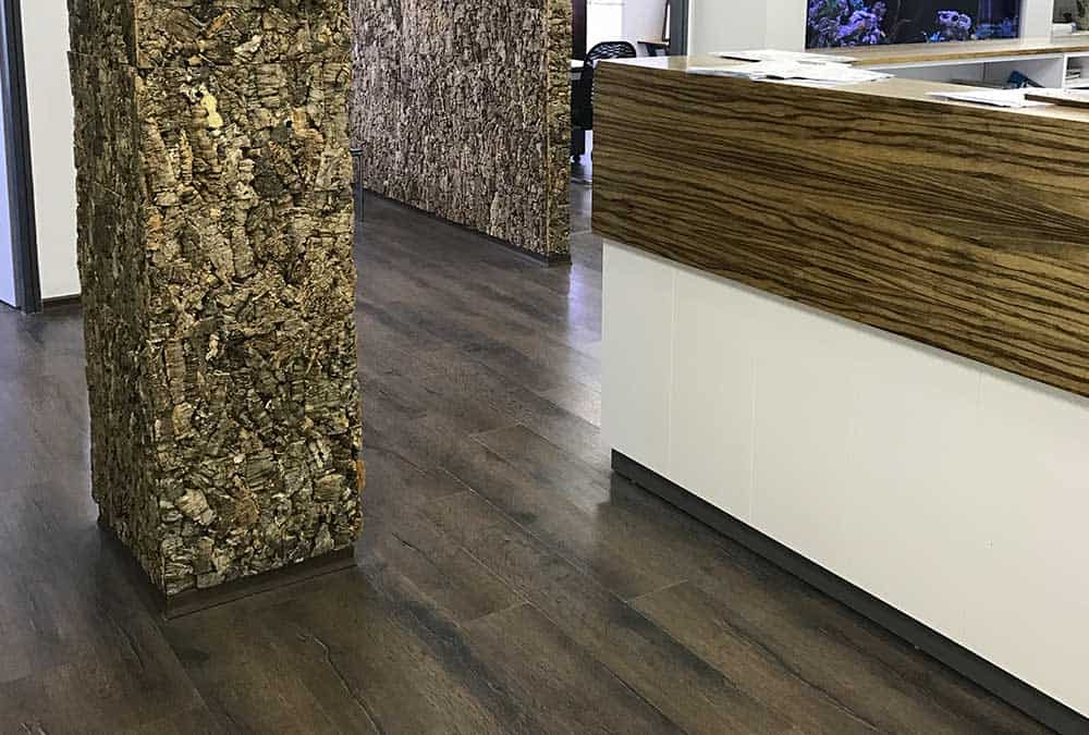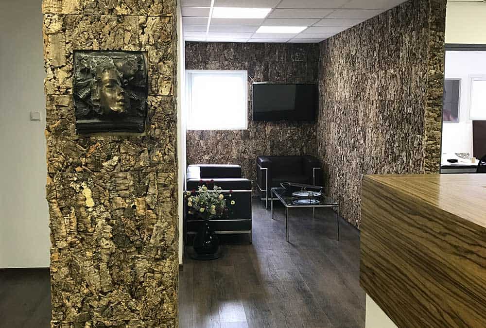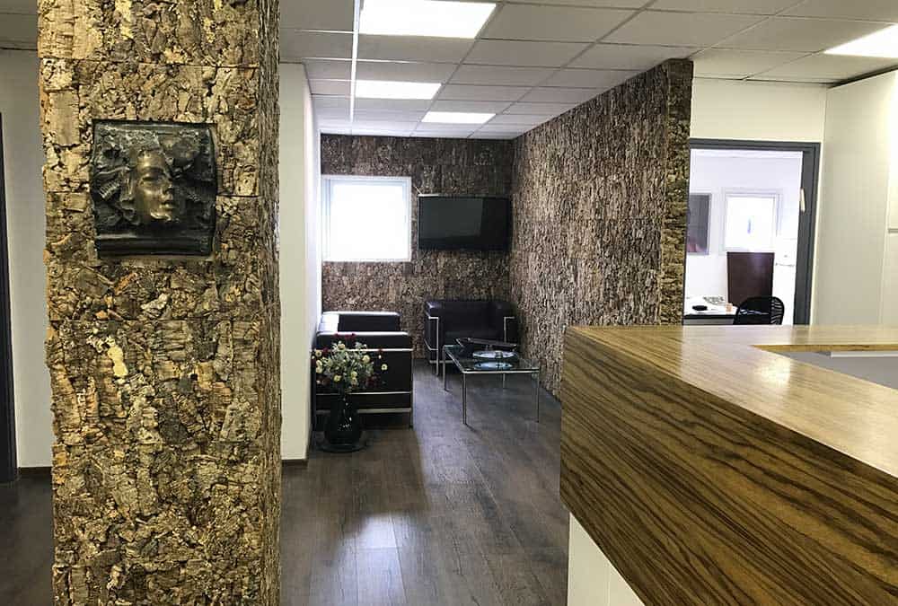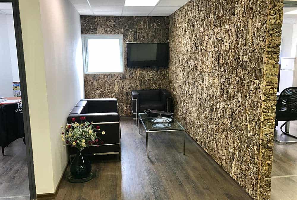 בחברת פולקובסקי יבנה הותקן פרקט בגוון עץ כהה מעושן, בכל המשרדים והחללים הפתוחים.